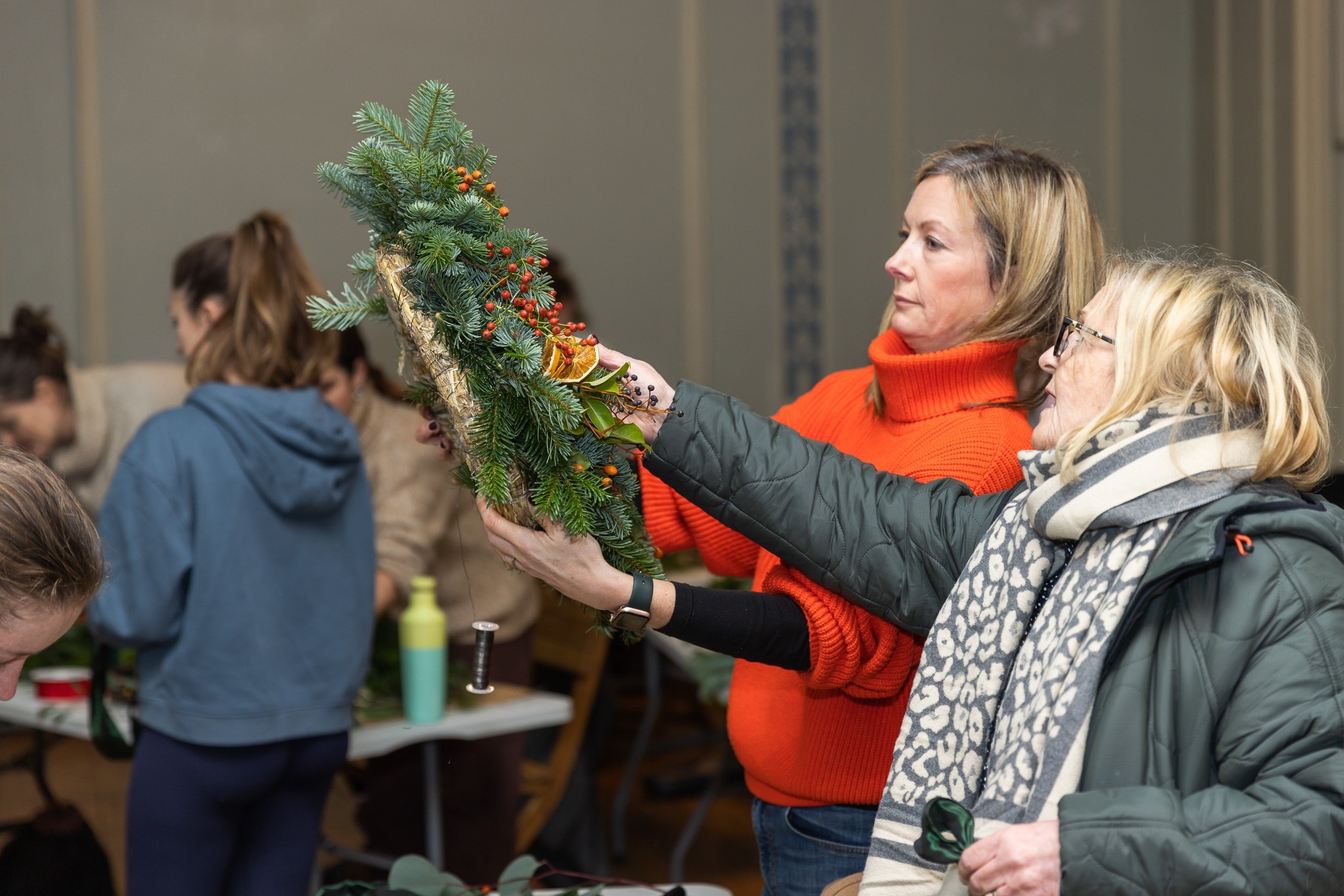 No experience necessary, our expert team will guide you through the process and ensure that you go home with a beautiful wreath to proudly hang on your door.
